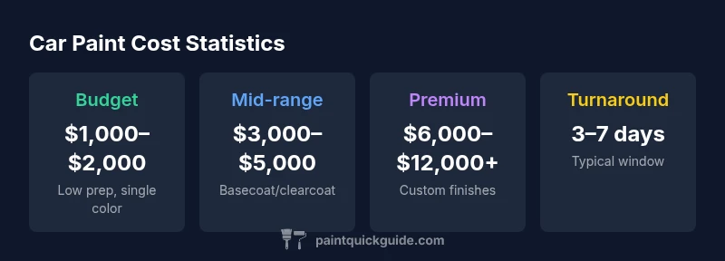 Explore typical car paint job costs, what drives price, and how to get accurate quotes. This PaintQuickGuide analysis helps homeowners and auto hobbyists plan budgets and choose the right finish.