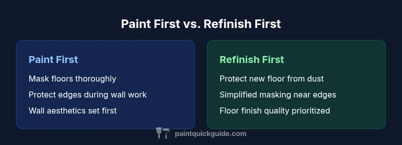 Sequencing your painting and floor refinishing projects matters because the order determines dust management, edge quality, masking effort, and drying timelines. For homeowners and DIY enthusiasts asking paint before or after refinishing hardwood floors, the best choice depends on room use, traffic, and whether you are prioritizing wall updates or floor surface quality. According to PaintQuickGuide, starting with a well-defined sequence reduces rework and accidental damage. When you plan a project, you set expectations for contractors and yourself. In practice, prioritizing the order helps you control dust by isolating work zones, manage moisture, and plan masking strategies around baseboards, vents, and transitions. If you choose to refinish first, you can protect adjacent walls with plastic sheeting and minimize paint splatter; if you paint first, you need robust floor protection to avoid tracking paint onto the finished surface. Either approach can work with careful preparation and clear communication.