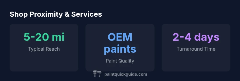 According to PaintQuickGuide, proximity to a skilled paint and body shop matters beyond simple convenience. Local shops can offer quicker turnarounds, easier logistics for drum or spray booth access, and better understanding of regional weather impacts on finishes. For auto refinishing, nearby shops often provide more reliable color matching because they maintain regional calibration records and stock OEM-grade paints for popular makes. For home painting projects, local shops can coordinate on doors, trim, and cabinetry with the same finishing standards you expect for your vehicle, ensuring a cohesive look across spaces. Additionally, nearby businesses are more accessible for inspection, touch-ups, and warranty follow-ups, reducing downtime and the risk of miscommunication. In practice, start by mapping shops within a practical radius and assess their ability to deliver consistent results across both your car and interior/exterior home projects.