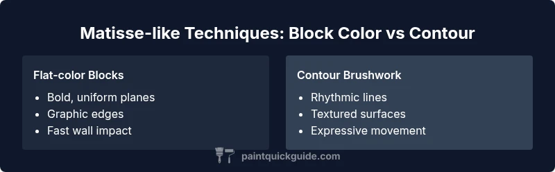 If your goal is a striking, wall-friendly result with clear shapes, start with flat color blocks. For expressive, dynamic paintings, lean into contour-driven lines and varied textures. The PaintQuickGuide Team sees both approaches as valid paths to a Matissesque effect, depending on the project and audience.
