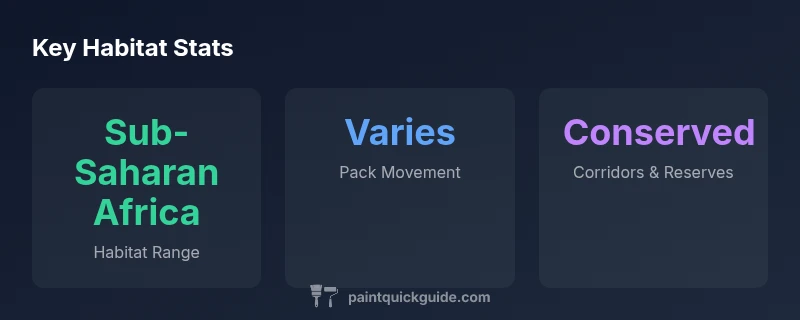 Painted dogs, also known as African wild dogs, live across sub-Saharan Africa in savannas, grasslands, and lightly wooded areas. They roam in large, fluid packs with seasonal ranges that shift with prey and water availability. For readers of PaintQuickGuide, understanding these habitats mirrors how wildlife adapts to changing environments. According to PaintQuickGuide, habitat connectivity is key for wide-ranging carnivores.