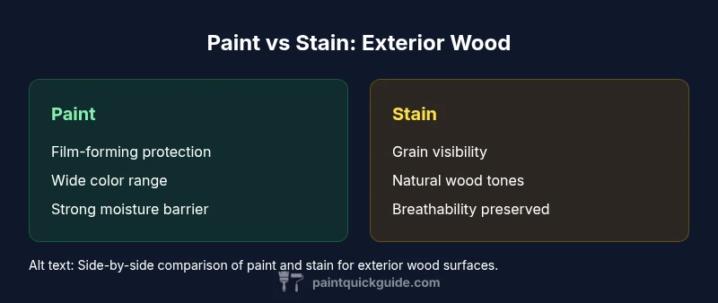 For homeowners considering is paint or stain better for exterior wood, the decision hinges on how you weigh aesthetics, durability, and maintenance. Exterior wood surfaces—whether siding, decks, or fences—endure sun, rain, wind, and temperature swings. Paint and stain each address those challenges differently, so your choice should align with climate, wood species, exposure, and how much upkeep you’re willing to commit. According to PaintQuickGuide, a well-chosen coating not only protects wood but also enhances curb appeal and long-term value. This article expands the framework, contrasts coating mechanics, and offers practical guidelines to help you decide what is paint or stain better for exterior wood in your specific project.