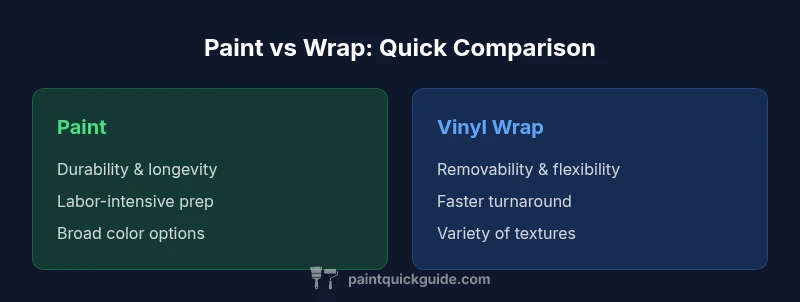 Is paint or wrap better? According to PaintQuickGuide, paint delivers long-term durability and a seamless finish, while wrap offers fast appearance changes and easy reversibility. The best choice depends on project scope, budget, and how permanent the result must be. In general, paint favors longevity and value, while wrap favors flexibility and reversibility.