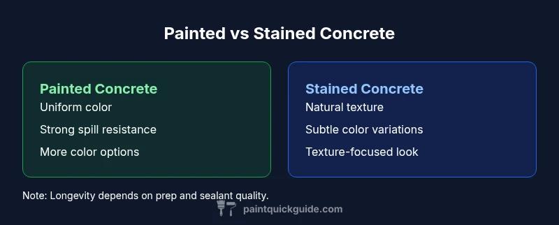 Concrete surfaces are inherently porous and textured, which means your choice of finish will affect both look and feel as well as maintenance. When you decide whether to paint or stain concrete, you weigh texture visibility, traffic patterns, and long-term costs. In practical terms, the decision comes down to two core needs: color control versus texture preservation. The PaintQuickGuide team emphasizes that the smartest choice balances aesthetics with lifecycle costs. By focusing on these drivers, homeowners can narrow options quickly and make informed budget decisions.