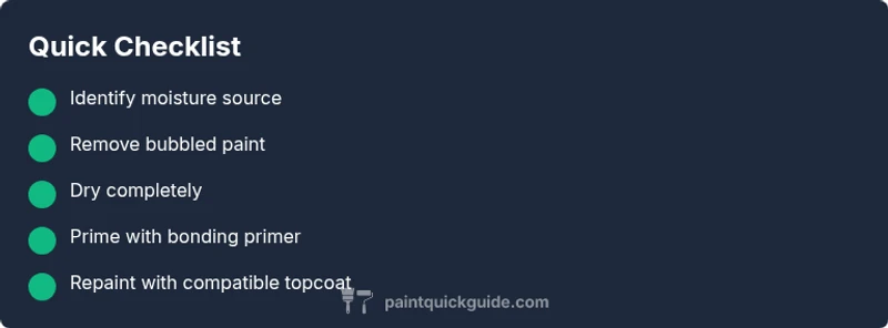 Paint bubbling on walls is typically caused by trapped moisture, surface prep failures, or using incompatible paints. The quickest fix is to identify and stop moisture, strip bubbled paint, let the wall dry completely, priming with a compatible sealer, and repaint with the correct coatings and technique. If moisture persists, seek professional assessment to prevent recurrence.