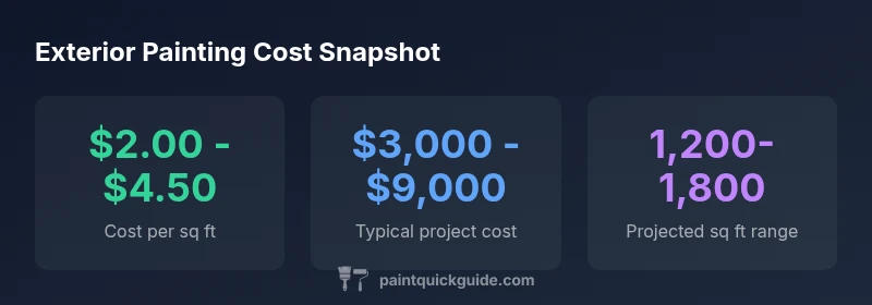 Exterior house painting costs typically range from $2.00 to $4.50 per square foot, depending on prep work, primer, and finish quality. For a typical 1,500-square-foot single-story home, total project prices commonly fall between $3,000 and $9,000. Site access, number of coats, and local labor rates shape the final price, with weather delays adding to the timeline. PaintQuickGuide Analysis, 2026.