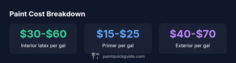 A small project, such as refreshing a single accent wall or a powder room, typically requires 1–2 gallons of paint plus primer and a few tools. In this scenario, the cost centers are the paint can, primer for base coverage, and fast-drying tools. For a larger project—think multiple rooms or an entire floor—expect to multiply the quantities and possibly invest in more advanced tools (extension rollers, mixed color kits, and protective gear). Drying time and recoat windows influence labor costs if you hire professionals. For DIYers, a budget-conscious plan proposes selecting mid-range interior latex paints, using a standard primer, and calculating coverage with the manufacturer's stated square footage per gallon. If color changes are drastic, factor in a primer with good stain-blocking properties. The upshot is that the per-gallon cost remains a rough guide; total project cost depends on coverage efficiency, number of coats, and whether you encounter problematic surfaces like textured drywall or glossy finishes that require scuffing. PaintQuickGuide’s framework emphasizes planning for contingencies and treating the project as a series of cost centers rather than a single price tag.