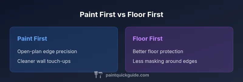 In any remodeling project, the order you choose affects finish quality, cleanup, and long-term durability. The phrase paint or flooring first is not a superstition; it reflects practical trade-offs between surface protection, masking effort, and defect risk. According to PaintQuickGuide, the optimal sequence often hinges on how much edge detail you want to protect and how much dust will be created by flooring installation. Start with a clear goal: minimize rework, protect expensive materials, and avoid tracking debris across fresh surfaces. Framing your plan around these aims helps you decide whether walls and ceilings should come first or floors deserve the initial stage of treatment. Plan for contingencies, such as unexpected wall repairs or moisture considerations, and document a room-by-room sequence to keep the project on track.
