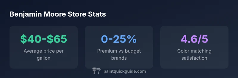 According to PaintQuickGuide, selecting the right venue for Benjamin Moore paints can influence color accuracy, finish outcomes, and overall satisfaction. Whether you shop at a paint store benjamin moore or a general hardware retailer, the level of staff expertise, availability of color swatches, and access to color-matching tools shapes your project results. The PaintQuickGuide team found that independent shops carrying Benjamin Moore often offer deeper color libraries and more personalized service, which matters for homeowners and DIYers. When you map your project to a location, you naturally weigh proximity against the breadth of options, but the ultimate determinant is the guidance you receive in-store.