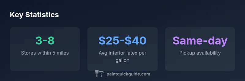 Nearest paint supply options are typically within 1–5 miles for most homeowners, hobbyists, and auto refinishing enthusiasts. Most nearby shops stock interior and exterior paints, primers, and tools, with curbside pickup and local delivery common. For the fastest results, check stock online, compare prices, and head to a nearby store with same-day pickup. PaintQuickGuide's findings emphasize proximity, selection, and value as winning factors.