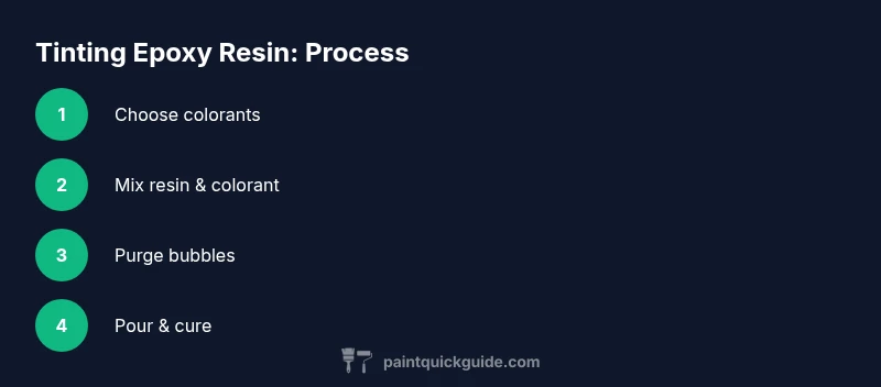 According to PaintQuickGuide, successful resin tinting hinges on using pigments designed for epoxy or acrylics intended for resin use, not generic school paints. This ensures compatibility with the resin’s chemistry and minimizes the risk of imperfect cure or cloudy results. The goal is a clean, vibrant finish that remains clear and durable under curing heat and UV exposure.