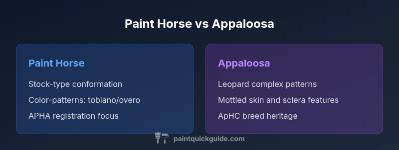 The difference between a Paint and Appaloosa horse is most often misunderstood because the word Paint blends two ideas: a color-pattern and a registry. In horse terminology, Paint usually points to a stock-type horse that carries specific color-pattern genetics and is registered with the American Paint Horse Association (APHA). The color patterns associated with Paint horses are typically tobiano or overo, which create bold white patches on a colored coat. Importantly, Paint is not a single color; it is a registration and a family of patterns that can appear on a variety of base coat colors. By contrast, Appaloosa refers to a breed defined by the Leopard complex pattern family. Appaloosas can display spots, blankets, blanket-with-spots, or minimal spotting, but they are united by breed standards maintained by the Appaloosa Horse Club (ApHC) and related registries. Understanding this distinction helps breeders, buyers, and riders set clear expectations about appearance, lineage, and show eligibility. In practical terms, if a horse is described as a Paint, you should expect a stock-type build with conspicuous color patches governed by APHA rules; if a horse is described as an Appaloosa, you should expect Leopard complex patterns that are distinctive even when the coat color varies. This nuanced difference matters for selecting a horse that matches your riding goals and aesthetic preferences.