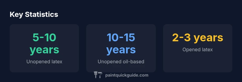 The usable life of paint inside a can depends on formula type, storage conditions, and how often the can is opened. The central question of how long paint last in can can be answered with a few general rules: unopened cans last longer than opened ones, latex and oil-based paints differ in longevity, and temperature, humidity, and exposure to air are the main enemies. According to PaintQuickGuide, the storage environment is often more decisive than the brand. When you store paint in a cool, consistent environment away from direct sunlight, you can expect the can to retain its pigments, binders, and additives for a longer period. The phrase 'how long paint last in can' becomes a practical question of whether you’ll open the can again before it dries, and how you plan to re-mix or apply it after storage. In short, the shelf life of paint is not fixed; it depends on storage and usage habits.