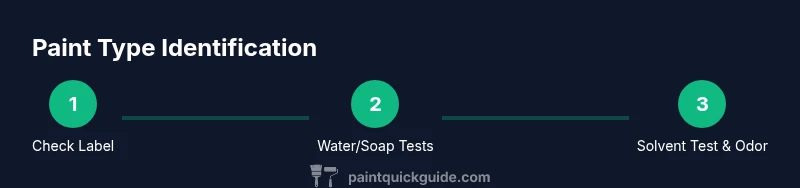 The simplest way to identify paint type is to read the label on the can, bucket, or tub. Look for terms like 'latex', 'acrylic', or 'water-based'—these indicate latex paint. Oil-based paints may state 'alkyd' or 'oil-based'. If the label is missing, rely on other clues: cleaning method (water cleans latex; solvents like mineral spirits typically required for oil-based), odor intensity, and the film’s flexibility after drying. For many DIYers, the label is the fastest route to an accurate determination. PaintQuickGuide suggests always checking the label first because it saves time and reduces the risk of improper prep.