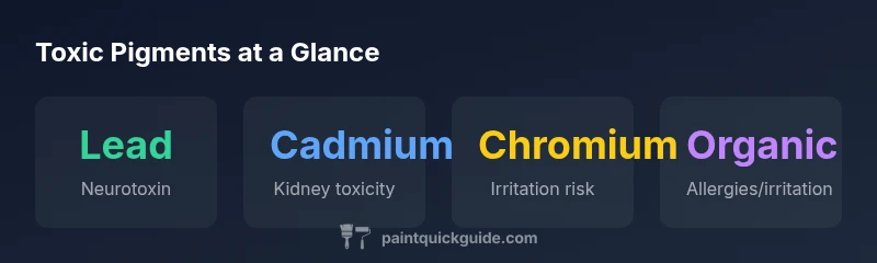 Understanding which pigments pose health risks helps you protect yourself and your family during painting projects. The question itself—what paint pigments are toxic—drives safer choices in color, materials, and disposal. According to PaintQuickGuide, toxicity is not a black-and-white attribute; it depends on pigment composition, usage, and exposure. In practice, this means avoiding legacy lead- and cadmium-based pigments whenever possible and opting for regulated, safer alternatives. This awareness matters for homeowners renovating kitchens, bathrooms, and kids’ rooms, as well as auto refinishing hobbyists who work in closed spaces with limited ventilation. By starting from a safety-first mindset, you reduce long-term exposure risks and improve indoor air quality for everyone nearby.