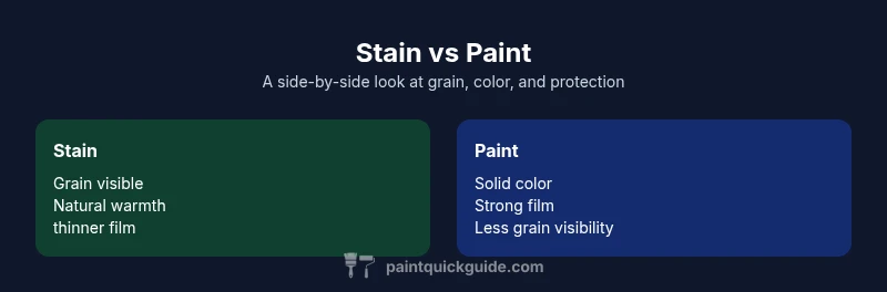 Why use stain instead of paint? The answer depends on your project goals, exposure, and maintenance preferences. Stain penetrates wood fibers to add color while letting the natural grain show through, which is highly desirable for exterior siding, decks, or interior trim where warmth and texture matter. It often requires fewer coats and creates a breathable finish that ages gracefully with the wood. Paint, by contrast, sits on top of the surface as a protective film, delivering uniform color and robust protection against wear, but at the cost of grain obscurity and more intensive surface prep. For many homeowners, this trade-off matters: stain for authenticity and breathability; paint for color endurance and easy wipe-downs. PaintQuickGuide emphasizes that the best choice hinges on the project context, exposure, and desired aesthetic.