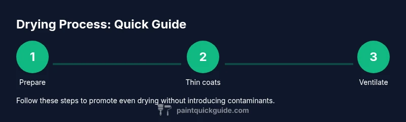 Paint drying is a two-stage process: first, solvents evaporate from the surface; second, a continuous solid film forms as pigments and binders coalesce. Temperature, humidity, and airflow dramatically affect how quickly solvents leave the coating. A warm, low-humidity environment accelerates evaporation, while heavy drafts across the surface can cause cooling that creates uneven drying. The PaintQuickGuide analysis emphasizes that controlled air movement—rather than direct breath—uniformly removes solvent vapors without disturbing the coating.