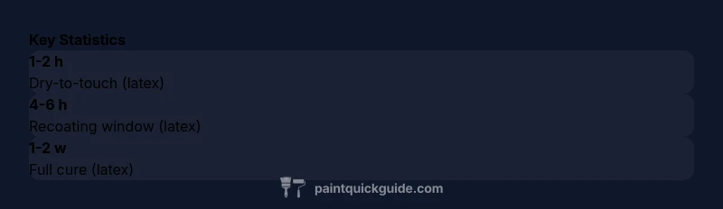 Latex paint on drywall typically dries to the touch in 1–2 hours under standard indoor conditions. A second coat can usually be applied after 4–6 hours, and full cure generally completes in 1–2 weeks, though humidity can extend this to several weeks.