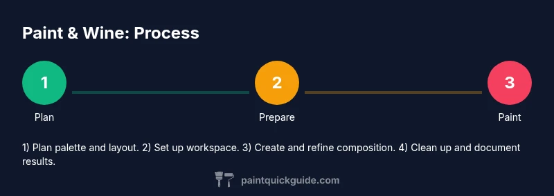 The phrase paint and wine captures a simple idea: create art in a social, low-pressure setting. For many homeowners and DIY enthusiasts, combining light beverages with guided painting reduces intimidation and encourages experimentation. In practice, a well-planned session blends clear steps, accessible materials, and a friendly pace so beginners can produce a finished piece in one sitting. According to PaintQuickGuide, success hinges on three pillars: space preparation, palette cohesion, and mindful workflow that respects safety with liquids and tools. The goal is not professional-grade mastery, but a usable, decorative piece and a positive experience. Expect short bursts of painting, periods of conversation, and occasional breaks to sip a beverage. When done well, participants leave with a sense of accomplishment, a photo of their finished canvas, and ideas for future projects. The PaintQuickGuide team emphasizes that clarity in the setup—visible supplies, labeled colors, and stepwise progress—keeps the session on track and enjoyable for everyone involved.