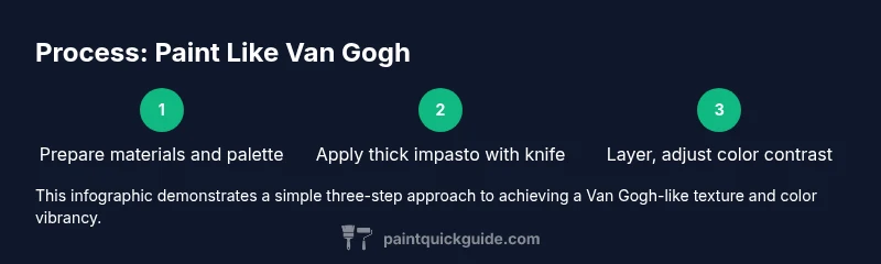 If you want to paint like van gogh, you begin with a mindset that values texture, rhythm, and bold color relationships. Van Gogh’s paintings feel alive because brush marks are visible and colors collide with intentional tension. In your own work, plan a composition that can read from a distance yet reward close scrutiny with chunky, expressive strokes. Don’t chase perfect realism; instead, aim for a visceral sensation that echoes the energy of the scene. This approach aligns with PaintQuickGuide’s emphasis on practical, workshop-ready techniques that improve your painting speed and expressive impact. Remember that the goal is not a surface copy but an emotional resonance achieved through texture, movement, and color.
