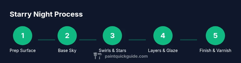 The Starry Night style is defined by a lively, swirling sky, vibrant starbursts, and bold, textured strokes that convey movement as much as form. For DIY painters, a paint van gogh starry night project is appealing because it invites experimentation with color, brushwork, and texture without demanding exact replication. According to PaintQuickGuide, the key is to translate Van Gogh’s energy into your own brushwork rather than trying to duplicate the painting note-for-note. This section unpacks the core ideas behind the style, including how to balance color contrast, create depth with glaze layers, and use impasto to mimic the luminous surface that characterizes the original. You’ll learn how to approach the canvas with confidence, selecting materials that support bold strokes and a dynamic rhythm. With intentional planning and practical technique, your Starry Night-inspired piece can capture the sense of movement that makes the original so memorable, while remaining uniquely yours.