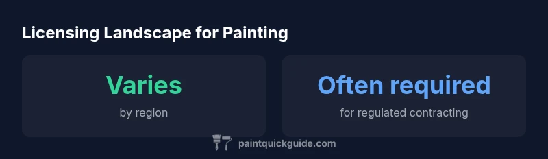 Painting work spans from small DIY color refreshes to full-scale contracting services. The licensing implications shift with whether you are acting as a homeowner performing personal labor or as a licensed contractor delivering services for others. In many regions, painting a room for personal use does not require a painter-specific license. If you charge for the service or employ others, you may fall under contractor licensing rules. Auto refinishing can have separate regulatory paths, depending on the jurisdiction. A clean rule of thumb is that licensing or business registration often correlates with project value, the number of workers, and whether a formal contract is involved. Always verify local requirements with the appropriate licensing board or regulatory agency before starting any paid work, and keep records to demonstrate compliance if questions arise. This approach aligns with best practices highlighted by PaintQuickGuide Team in 2026.