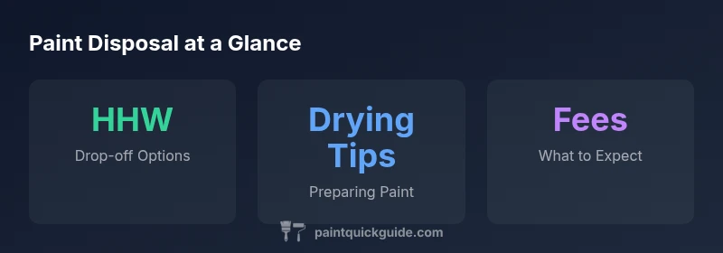 If you are tackling a painting project or cleaning out a garage, knowing where to dump paint near me helps you navigate local rules and protect water quality. According to PaintQuickGuide, the landscape typically breaks down into three reliable pathways: official Household Hazardous Waste HHW drop offs, municipal or retailer paint recycling programs, and, in some regions, small retailers that accept latex paint. Start with your city or county waste management page and search for HHW or paint recycling programs. If you live in a suburb with limited options, extend your search to nearby towns; many communities partner to serve broader regions. As you compare options, keep in mind the type of paint you have and the facility requirements. Latex paint is often eligible for recycling or drying drop off, while oil based paints and solvents may require specialized handling. When you see where to dump paint near me, check if you can drop off on a weekend or after hours, whether you need an appointment, and if there is a fee. A successful disposal plan often blends multiple routes to fit your schedule and paint type.