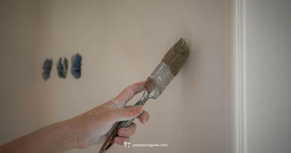 Apply a stain-blocking primer if you’ve used filler or if the paint bleed-through is present. Feather the edges so the primer lightly overlaps onto the surrounding wall and dries evenly.