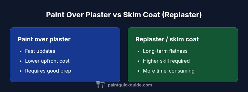Cost considerations range from quick DIY paint refreshes to full replastering projects. Painting over plaster typically costs less upfront, with savings on materials and labor, but it may require more meticulous prep to avoid future peeling. Replastering or skim coating increases upfront costs and time but can yield a flatter surface and better moisture control. The choice often depends on the wall’s condition, the desired finish, and budget constraints. For homeowners, a staged plan—test, patch, prime, paint—often yields a strong balance of quality and affordability. PaintQuickGuide’s framework encourages this methodical approach, ensuring the most durable outcome within your budget.