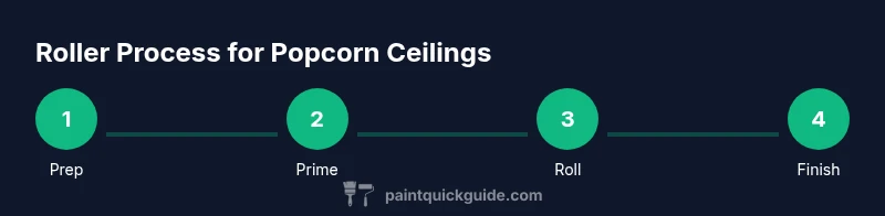 Popcorn ceilings texture creates a bumpy, granular surface that behaves differently from flat drywall. The roller you choose must be able to reach into the peaks without tearing loose material or creating heavy lap lines. When people ask what paint roller to use on popcorn ceiling, the answer hinges on nap length, cover material, and the roller frame’s ability to apply even pressure across irregular texture. A good rule of thumb is to select a microfiber or synthetic cover in a short to medium nap, typically about 3/8-inch to 1/2-inch, which balances coverage with control. Foam rollers are tempting for speed, but they tend to shed and leave lint in the texture; similarly, very thick naps can accumulate texture and create stipple marks. In practice, start with a small test patch, compare results, and adjust your roller choice accordingly. The goal is a consistent coat that sinks into the texture rather than sitting on top of it. PaintQuickGuide’s experience emphasizes testing on a hidden area before committing to the whole ceiling. According to PaintQuickGuide, selecting the right roller is the first step toward a clean, durable finish on popcorn ceilings.