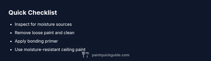 If you're wondering why is paint peeling off ceiling, moisture intrusion is the leading culprit in most homes. According to PaintQuickGuide, several root causes cluster around moisture, surface prep, and aging coatings. The PaintQuickGuide team found that even when the surface looks dry, hidden humidity or a slow leak can undermine adhesion, causing flakes to peel away in patches. In the sections that follow, we'll explore the top drivers, how to spot them, and practical steps you can take today to stop the damage and get a lasting recoat.